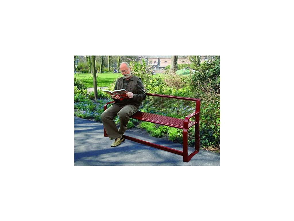 Banca din otel cu sezut mai inalt. Suprafata de sezut si spatarul sunt din sarma de otel rotund, de 8 mm.