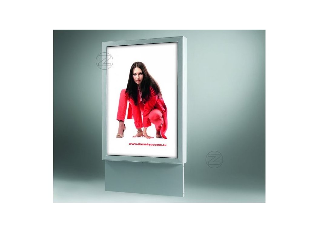 Panou afisaj din aluminiu cu profile unghiulare, cu balamale ascunse. Posibilitate de blocare primavara, cu ajutorul unei chei hexagonale. Afisare Backlit in formatul CPL.