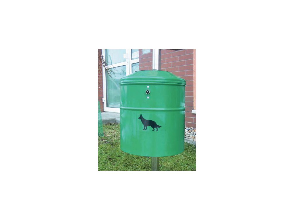 Cos din otel, cu capac pentru aruncarea pungilor in cos. Cosul este prevazut cu pungi si cu lopata.