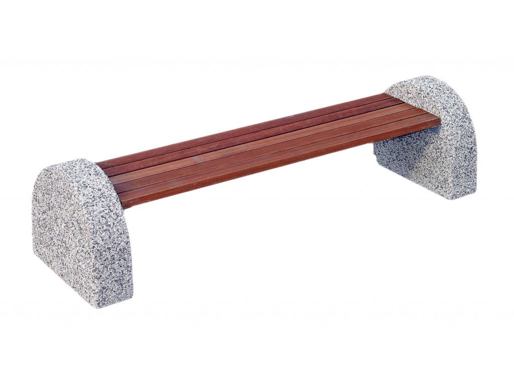 Banca fara spatar, cu picioare din beton, cu suprafata de sezut din sipci de lemn.