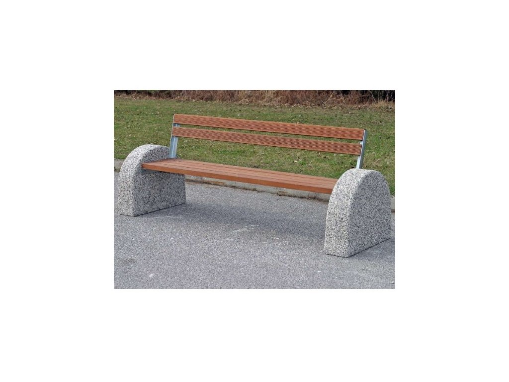 Banca fara spatar, cu picioare din beton si cu suprafata de sezut si spatar din sipci de lemn.