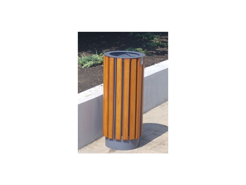 Cos stradal , cu structura din otel galvanizat, acoperit cu lamele din lemn.