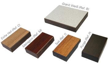 Compact oferă 5 nuante: tec, mahagon, stejar, punga, granit alb