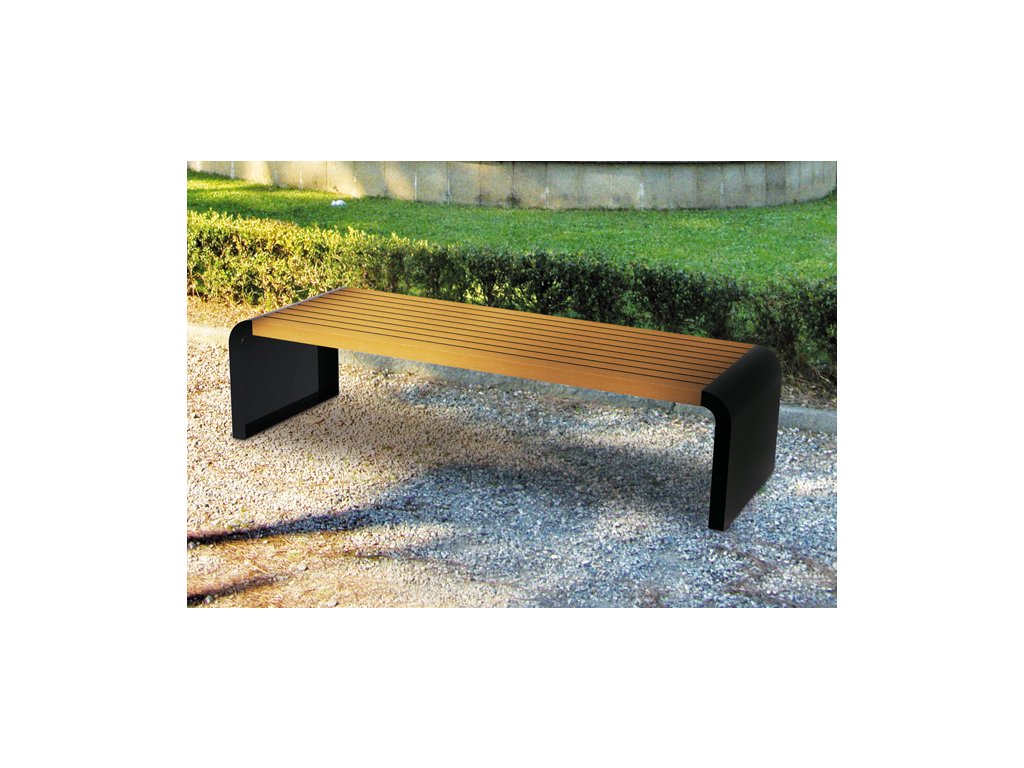 Bancă parc din oțel zincat la cald si vopsit in camp electrostatic in culori RAL, sezutul si spatarul din lamele Compact cu grosime de 14mm.