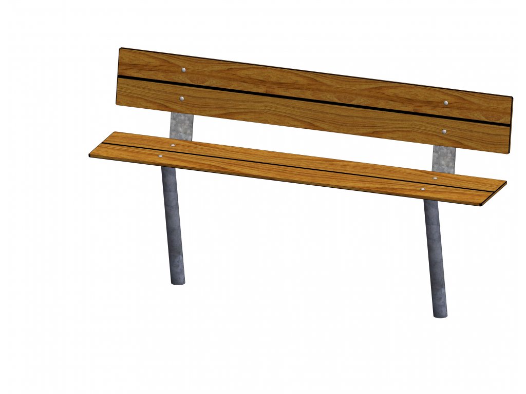 Bancă parc din oțel zincat la cald, la cerere vopsit in camp electrostatic in culorile RAL 6005 verde inchis sau RAL 9005 negru, sezutul si spatarul din lamele Compact cu grosime de 14mm in culorile tec sau havanna.