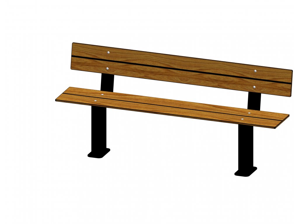 Bancă parc din oțel zincat la cald, la cerere vopsit in camp electrostatic in culorile RAL 6005 verde inchis sau RAL 9005 negru, sezutul si spatarul din lamele Compact cu grosime de 14mm in culorile tec sau havanna.