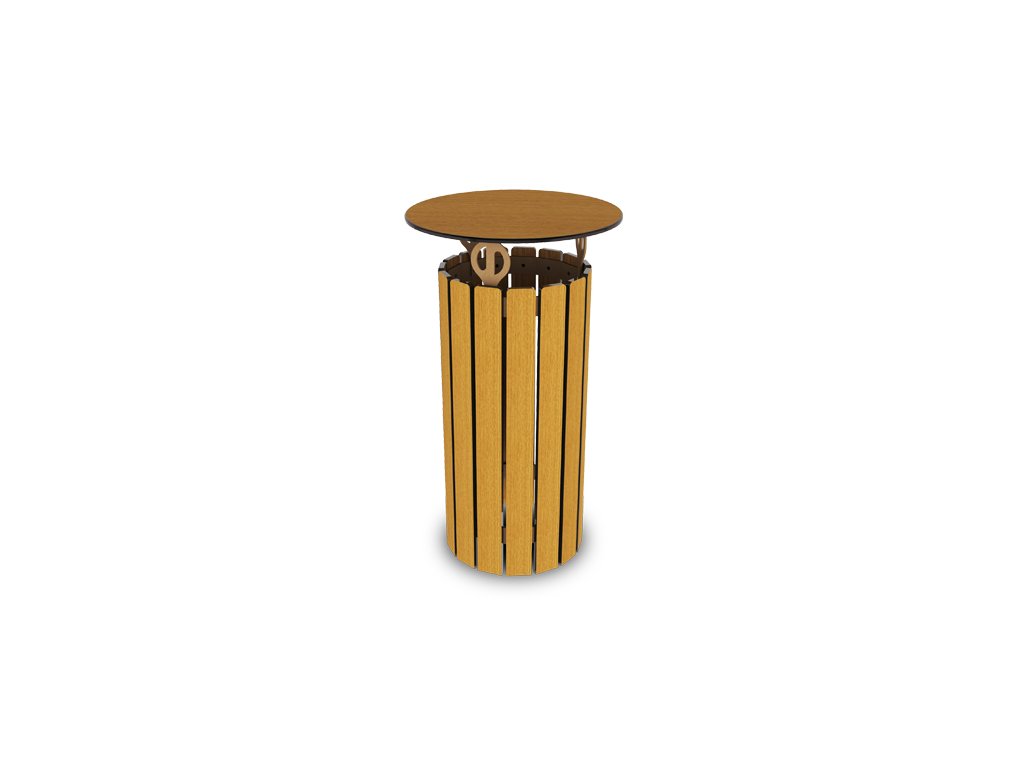 Cos parc din oțel zincat la cald si imbracat cu lamele Compact cu grosime de 14mm. Este prevazut cu un inel pentru sac de gunoi. Optional cu capac de protectie.