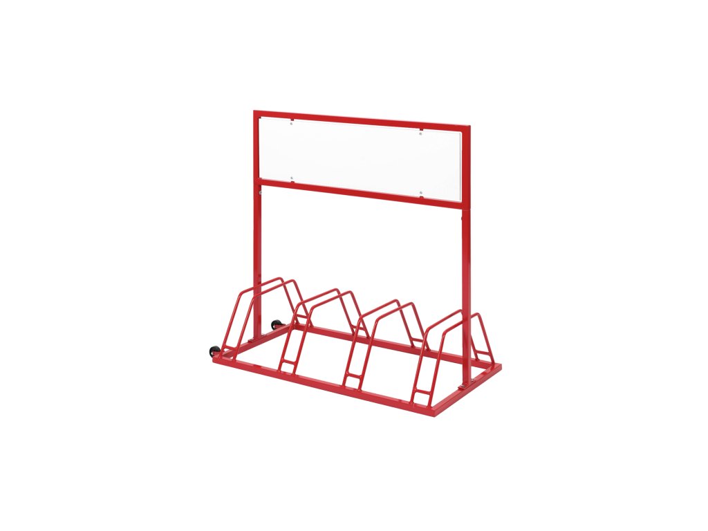 Constructie stabila de otel, cu cadre sudate. Rama de bază stabilă, inclusiv rolele laterale pentru schimbarea ușoară a locației. Panou publicitar (934 x 250 mm) din aluminiu, alb, înșurubat, fără inscripție.