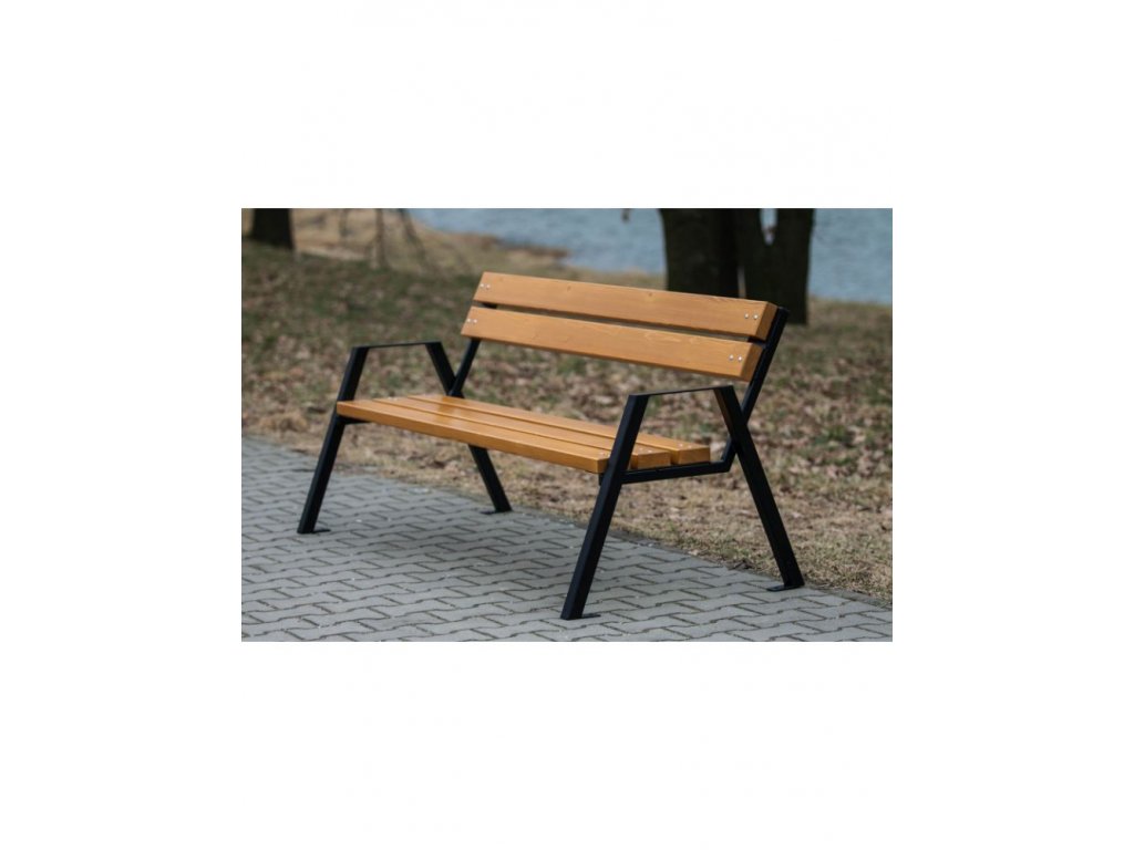 Suport din otel. Suprafata de sedere si spatarul din sipci de lemn.