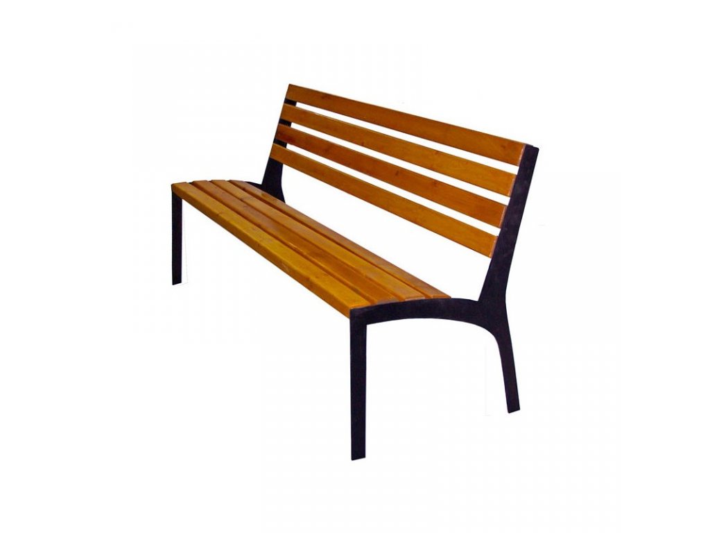 Suport din otel taiat cu laser. Suprafata de sedere si spatarul din sipci de lemn.