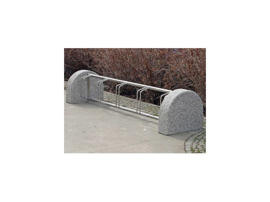 Rastel de biciclete cu suport din beton armat si locasuri pentru biciclete din inox.