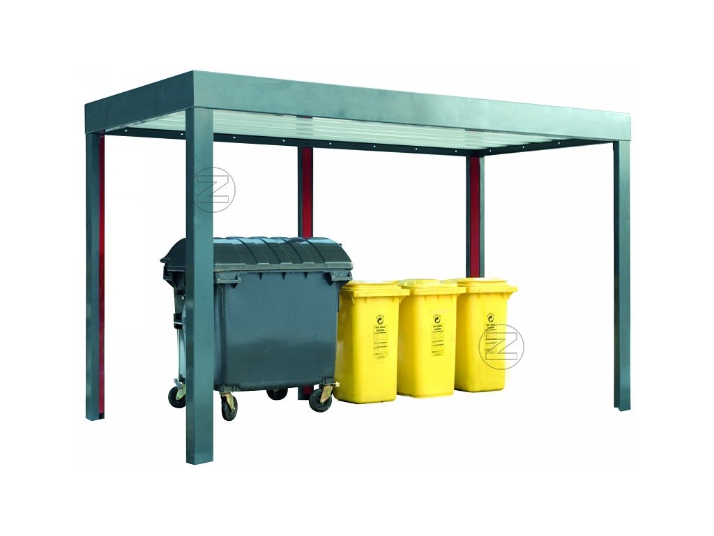 Constructie de otel zincat la cald. Sustineri din teava dreptunghiulara 100/50 mm. Rama acoperisului din profil de cant autoportant (inaltime 140 mm) cu tabla trapezoidala in partea inferioara.