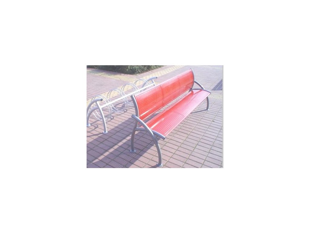 Banca din otel. Suprafata de sezut si spatarul sunt din tabla de otel perforata.