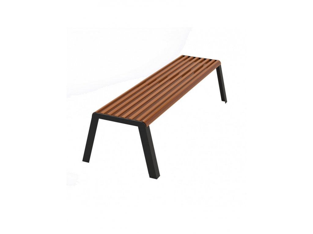 Suport din otel. Suprafata de sedere si spatarul din sipci de lemn.