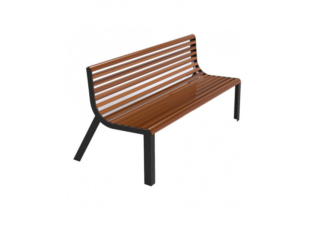 Suport din otel. Suprafata de sedere si spatarul din sipci de lemn.