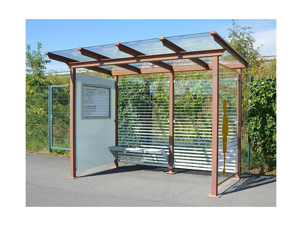 Design elegant. Suporturi din teava patrata. Acoperis inclinat din sticla.