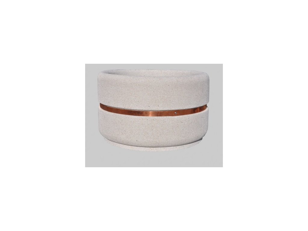 Jardiniera din beton cu inel decorativ de cupru sau inox.